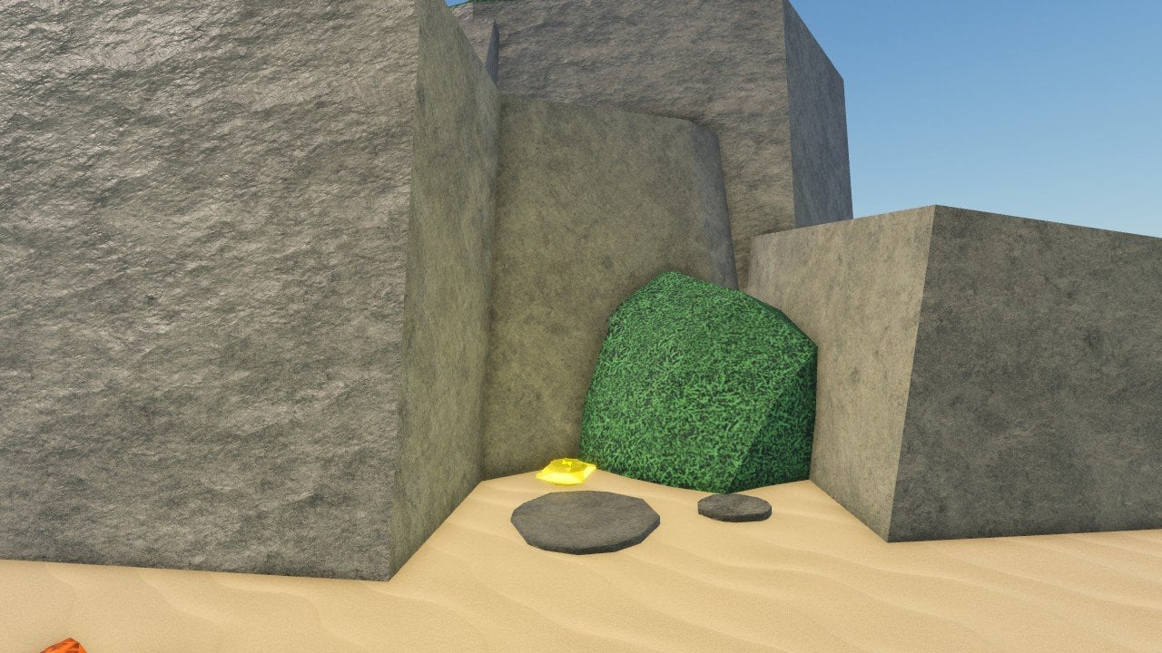 На маленьком островке к северу от Grand Reef. Спрятан между скалами рядом с кустом.