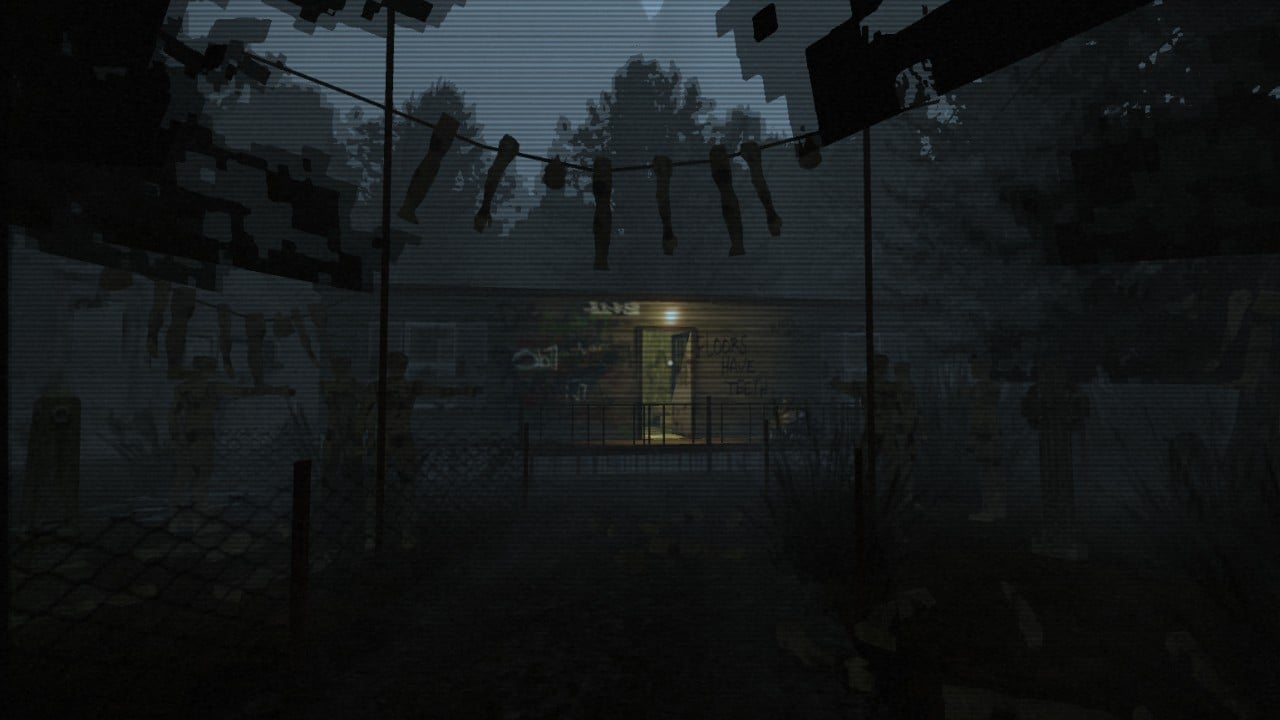 С кормом для собак вернитесь назад и взаимодействуйте с миской. Собака начнет есть, и путь, который был заблокирован, откроется. Направляйтесь к зданию с гаражной дверью, поднимите ее и обнаружите зловещий туннель. Не бойтесь, внутри ничего страшного не ждет — по крайней мере, на этом этапе.